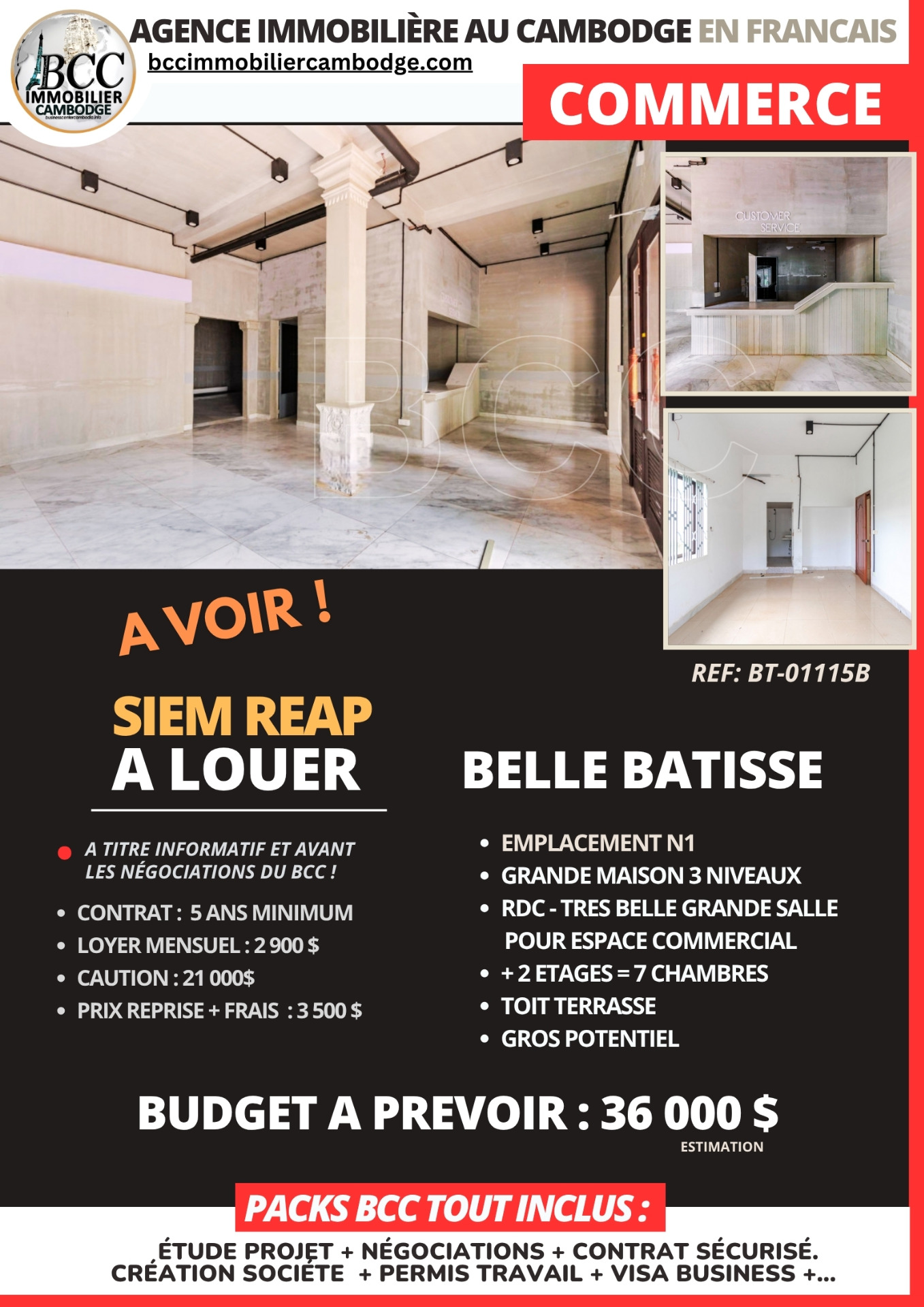 Cette ANNONCE COMMERCE est "BUDGET A PREVOIR" , ce qui vous permet d'avoir une VUE REALISTE  sur l'investissement (Détails plus bas) -  Ces CONDITIONS ACTUELLES SONT AVANT LES NEGOCIATIONS DE BCC